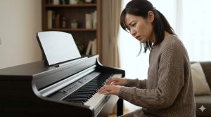 私も毎日ピアノを弾くのが日課なので、お気に入りの曲を練習している最中に、一つだけの鍵盤が突然沈んで戻らない状態になったり、打鍵時の異音としてカタカタと不自然な音が鳴ったりすると、心臓がキュッとなるくらい不安になる気持ちがすごくよくわかります。何かほこりでも詰まったのかなと原因を調べたり、自分でできる直し方があるならすぐに試してみたいと考える方も多いかなと思います。