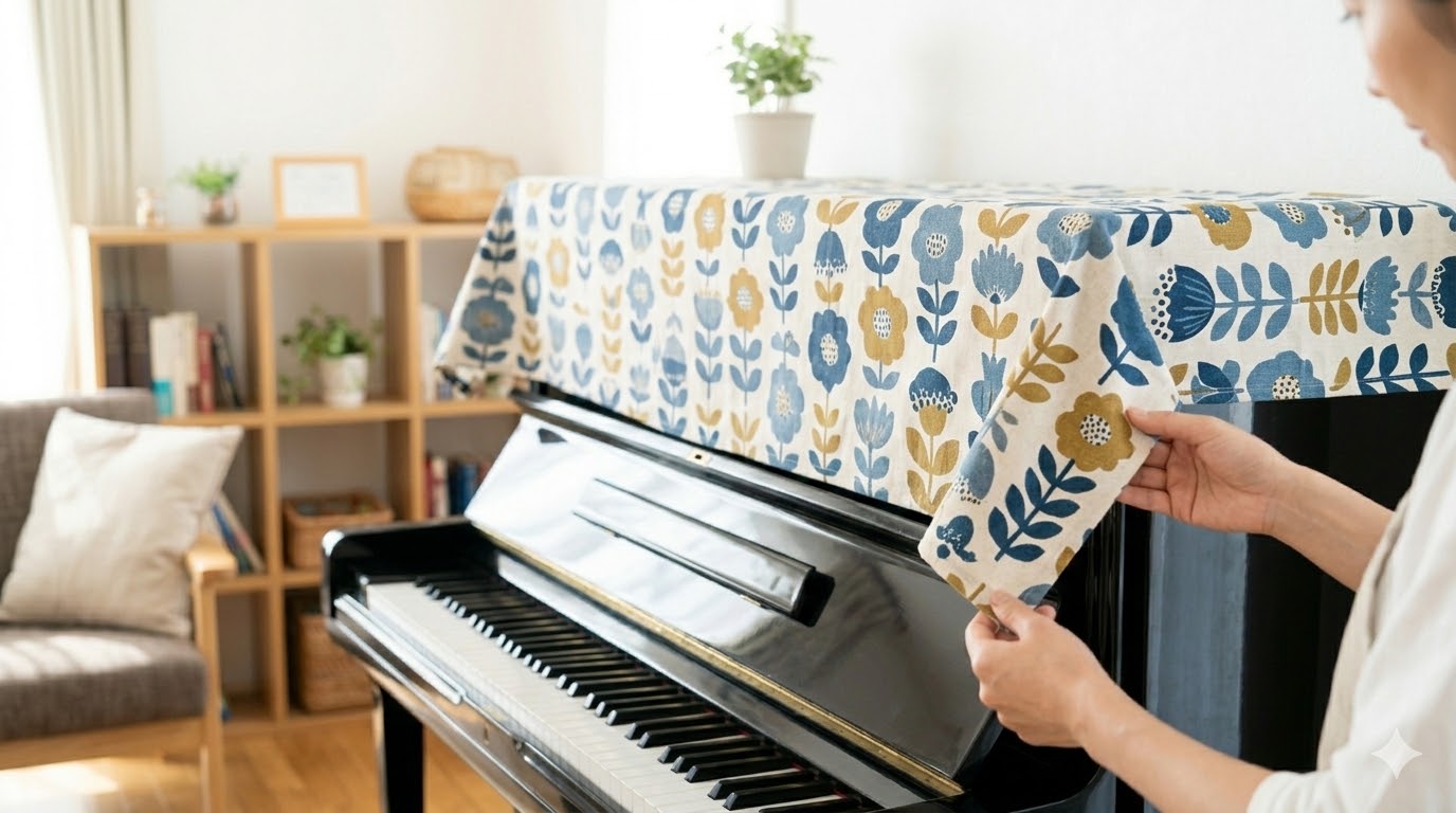 手軽に掛けられるトップカバーから、鍵盤周りまでしっかり覆う定番のハーフカバーまで、おすすめの生地の選び方も詳しく解説しますね。お気に入りの布を見つけて、あなただけの素敵な空間作りに挑戦してみませんか。