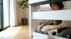 電子ピアノを設置した後に「しまった!」と思いがちなのが、電源コードやペダルのケーブル配線です。だらんと黒いコードが垂れ下がっていると、せっかくのおしゃれな空間が一気に生活感に溢れてしまいますよね。