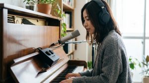 本格的なレコーディングスタジオのように完璧な防音・吸音設備がない自宅の部屋で録音する場合は、壁や床からの不要な音の跳ね返りをどう抑えるかが鍵になります。専門的な吸音材を壁に貼るのが一番ですが、予算がない場合は、ピアノの周りに分厚い毛布を吊るしたり、厚手のカーテンを閉めたりするだけでも、余計な反響をかなり抑えることができますよ。